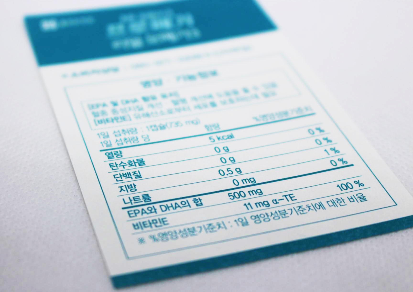 1캡슐당 EPA, DHA 함량이 50%는 넘어야 합격이다. 종근당 프로메가에는 1캡슐 735mg 중 EPA, DHA가 500mg이나 들어있다. 비중으로 치면 68% 정도다. 종근당건강 녀석들, 네이밍에 자부심 좀 가져도 될 듯.